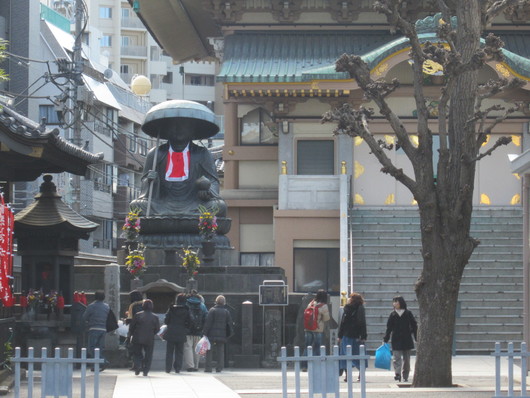 商店街に入る前に真性寺に寄ってお地蔵さんに挨拶していきます。