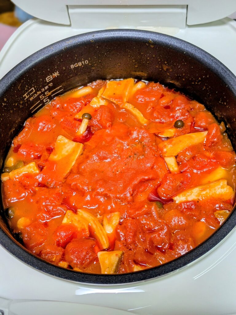 炊飯器で簡単料理 投稿日 2026年3月9日 著者 ningyocho-admin カテゴリー ブログ こんにちは岡田です 炊飯器でチキンときのこのトマトソース煮作りました~ 冷凍のトマト1個としめじとエリンギ、ウインナー、蒸し大豆、トマトのホール缶、塩コショウ、コンソメを入れて炊飯ボタン押すだけ 美味しいトマト煮が出来上がり シメはパスタで 頂きました~ スカルプ チキンときのこのトマトソース煮 トマト煮 中央区理容室 人形町、水天宮、浜町、床屋、カットハウススペース 人形町床屋 炊飯器料理 茅場町理容室 この記事を書いた人 ningyocho-admin 記事一覧