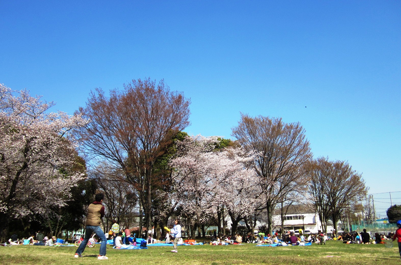 お花見をする人でいっぱいでした。