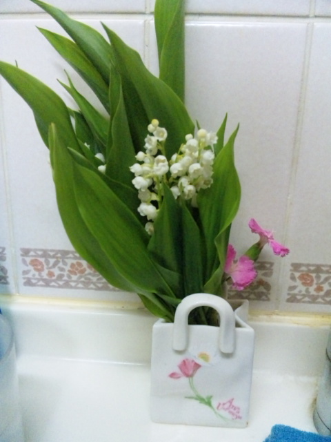 仕事帰り人形町の露店の花屋さんでスズランの花を買ってきました。