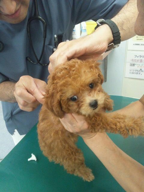 愛犬連れて病院へ 投稿日 2012年8月9日 更新日 2012年8月8日 著者 ningyocho-admin カテゴリー 店長ブログ 昨日愛犬3匹連れて病院へ行ってきました。 ラヴ・・・8才3.76㌔は今月末に歯石除去の際、全身麻酔でやるため事前の血液検査!(画像右) キララ・・・3才3.48㌔は年1回のワクチン!(画像左) トイプーのルナ・・・生後78日820㌘は生後3回目のワクチン!(画像中央) ワクチンが終わり待合室で、ちょいお疲れぎみのルナ ルナは1週間後に公園デビューです! この記事を書いた人 ningyocho-admin 記事一覧