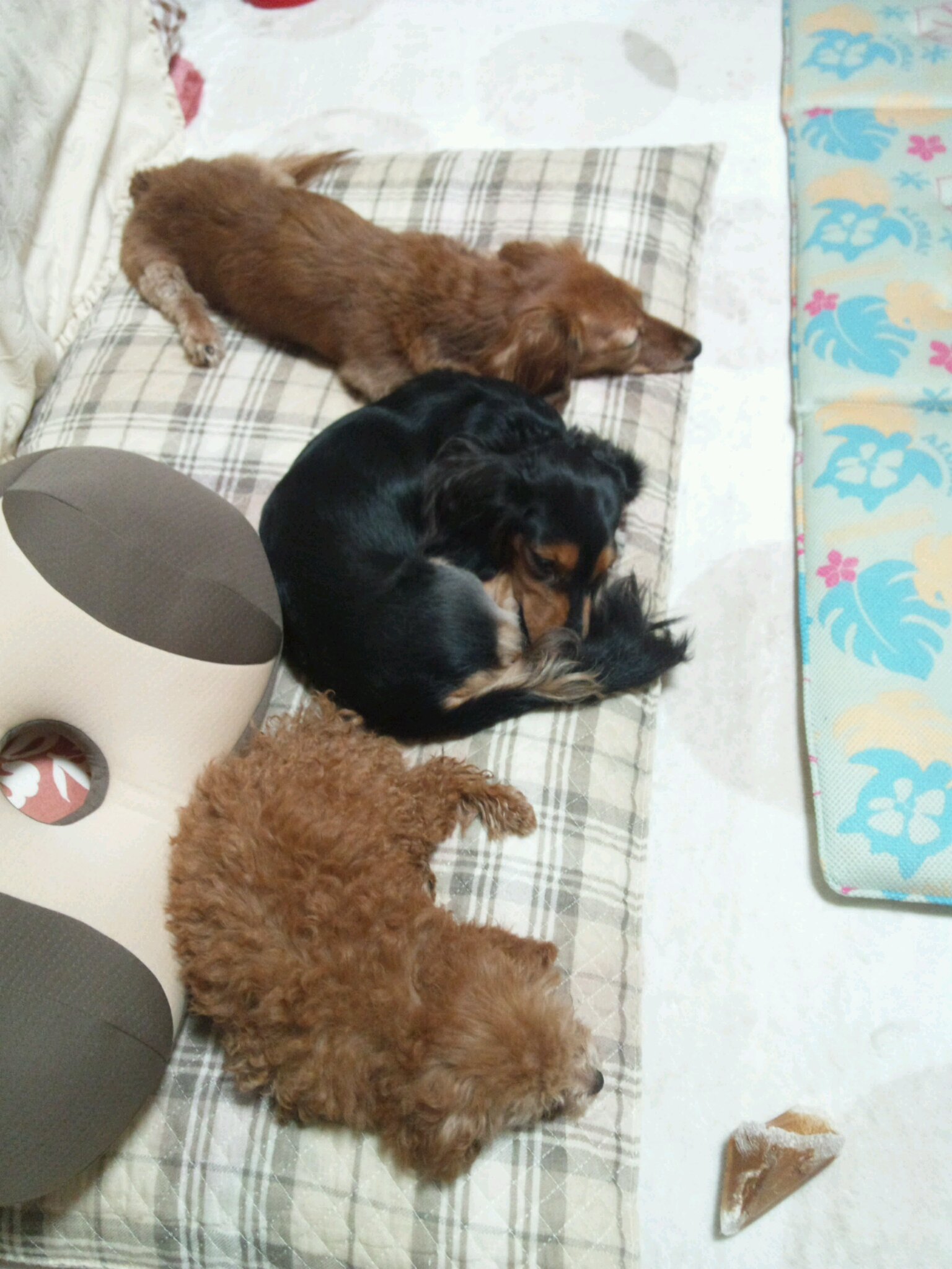 散歩(#^.^#) 投稿日 2012年9月10日 著者 ningyocho-admin カテゴリー 店長ブログ 昨日は久しぶりに3匹連れて公園に散歩(~▽~@)♪♪♪ 公園着いたらカニンヘンダックスのベイビーが、 私が多頭飼いを進めた犬友達(元々ダックスを1頭飼ってました)が、 遂に決断し運命の子に出逢えたんだそうです。(*´∇`*) 名前はレイちゃん(~▽~@)♪♪♪ 現在3ヶ月!ルナと1ヶ月違いで仔犬同士良く遊びました。 家に戻った3匹は… グッタリでした( ̄∇ ̄*)ゞ この記事を書いた人 ningyocho-admin 記事一覧