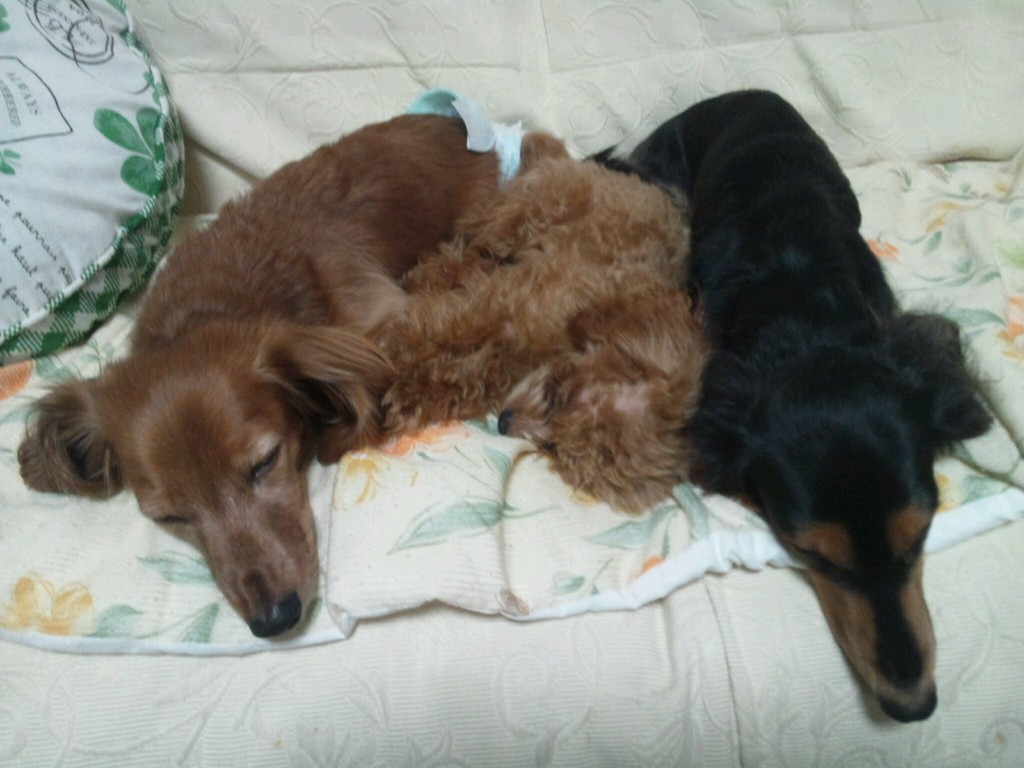 せっかくのお休みが・・・ガァ──(_△_;)──ン 投稿日 2012年10月14日 著者 ningyocho-admin カテゴリー 店長ブログ 本日晴れの予報が、午後から小雨がパラパラ… 散歩に行けず暇してる3匹は諦めたのか、 ふて寝してました って言うか散歩に行けなかった自分もふて寝してしまいました(笑) この記事を書いた人 ningyocho-admin 記事一覧