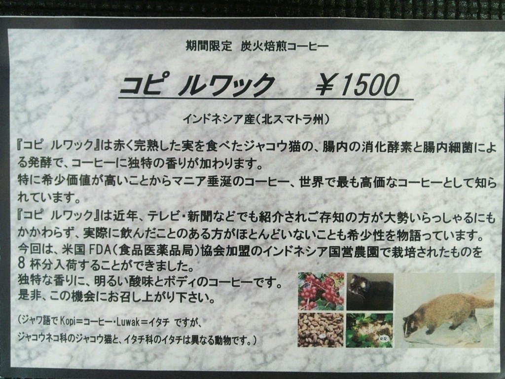 コピ ルワックと言われるコーヒーです( ^-^)ノ∠※。.:*:・’°☆