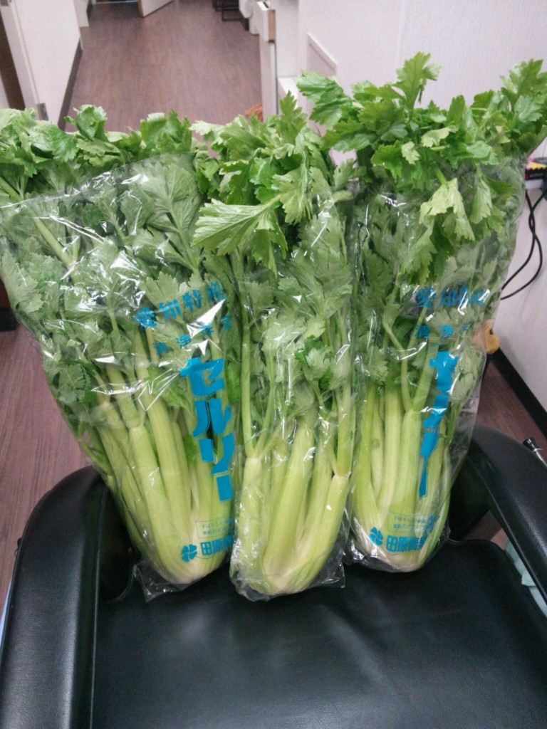 先日お店のビルのオーナーさんにセルリ頂きました〜っ(*^▽^)/★*☆♪