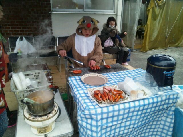 着ぐるみ着たお兄さんが一生懸命焼いてました。