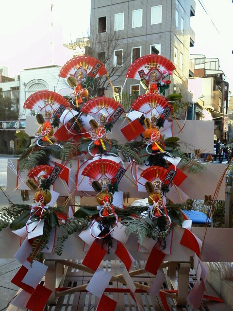 人形町通りではしめ飾りと一緒に鏡餅も売ってます。