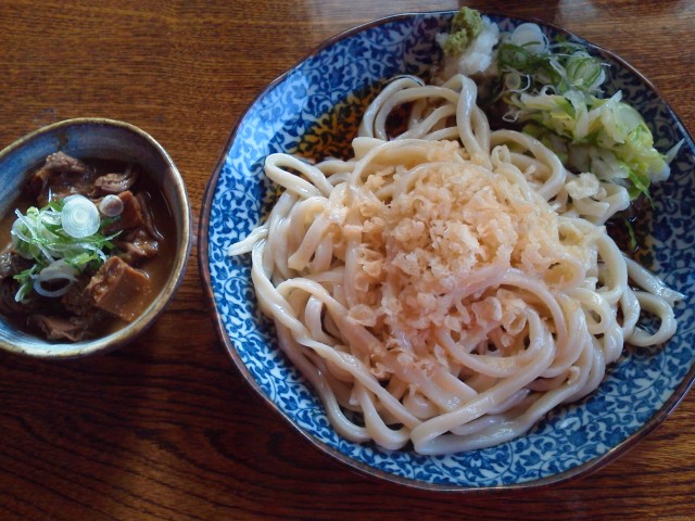 注文したのは「冷やしたぬきうどん」と「モツ煮」です。 モツ煮は「馬のモツだけど大丈夫?」と聞かれました。 モツが苦手ではないので「多分大丈夫です。」と応えました。 うどんの歯ごたえ凄くて美味しいし、モツ煮も美味しかったです。 人生一のうまいうどんでした( ☆∀☆) また食べに行きたいけど、遠いなぁ〜^^;