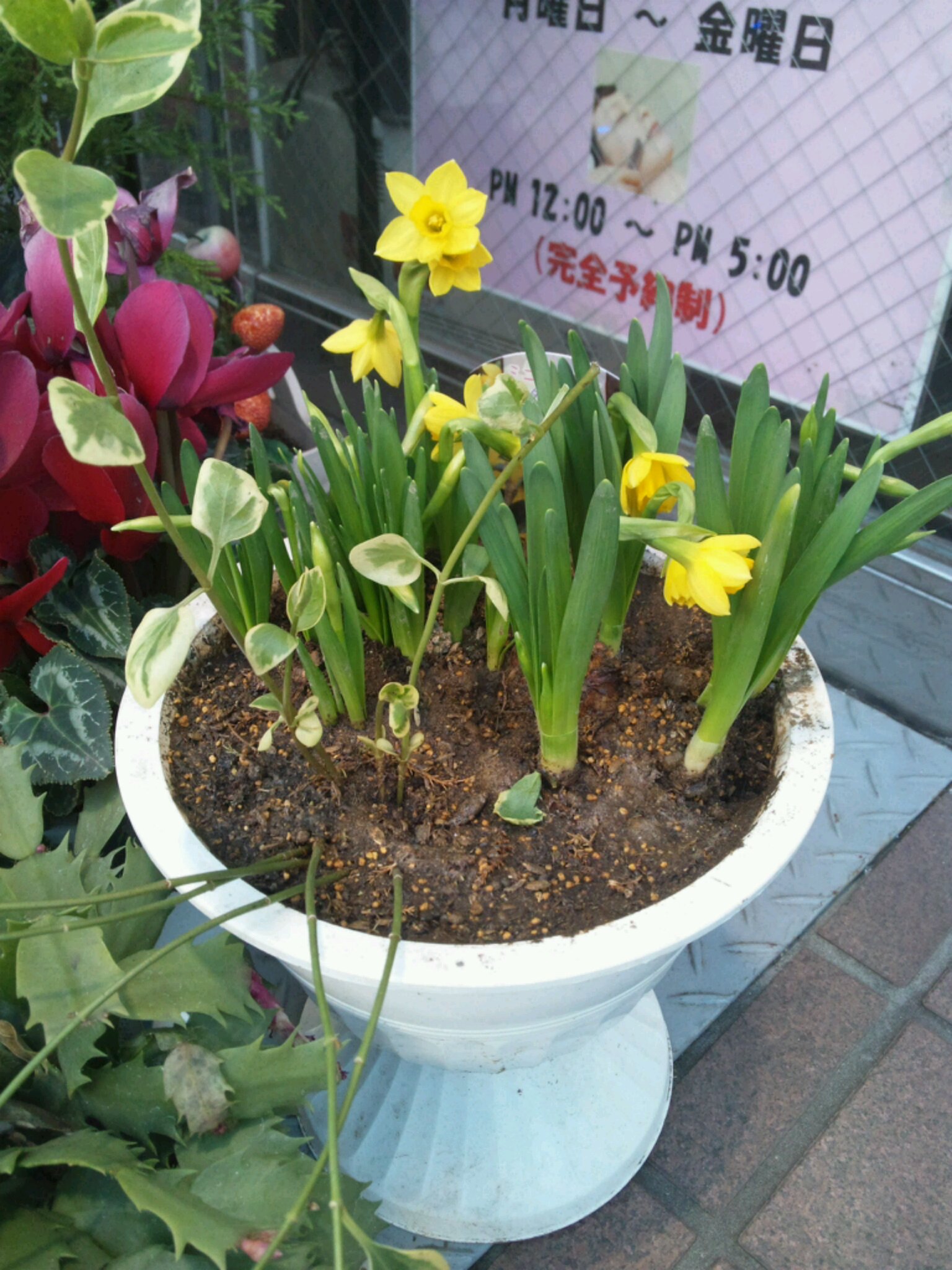 人形町床屋スペース!の店先は♪ 投稿日 2013年3月2日 更新日 2013年2月24日 著者 ningyocho-admin カテゴリー 店長ブログ 只今お店の入り口には、 ミニ水仙が咲いてます。 何故か私はこの寒い時期にけなげに咲いてるミニ水仙を観るとホッとします(*´∀`) もうすぐ桜の開花の便りが聞こえて来ると思いますが、 まだまだ寒い日が続いてます((+_+)) 皆さん健康には十分気を付けて下さいね♪ヽ(´▽`)/ この記事を書いた人 ningyocho-admin 記事一覧