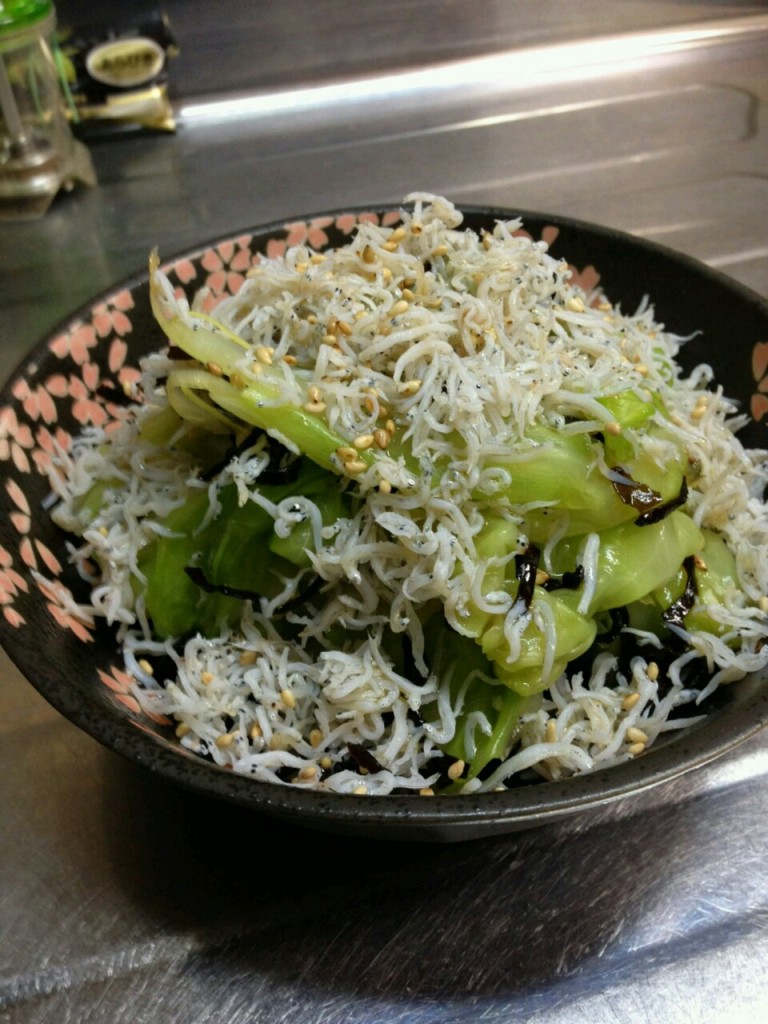 茹でキャベツの塩昆布あえです。