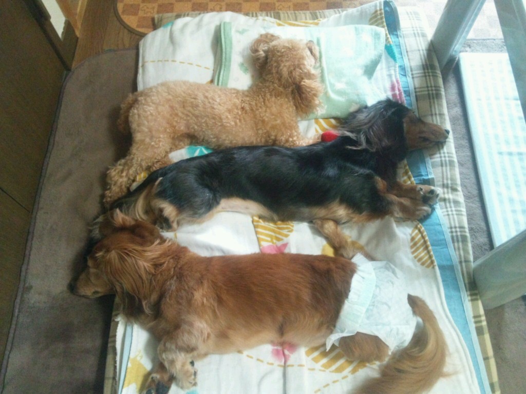 我が家の愛犬達は・・・ 投稿日 2013年7月22日 著者 ningyocho-admin カテゴリー 店長ブログ 蝉の声にも暑さを感じる日を迎 えておりますが、 我が家の3匹はこの暑さにも負けず、 ご覧の通り川の字になって寝てます(“⌒∇⌒”) あっ(゜ロ゜;!今日はエアコン付けず扇風機で頑張っておりま〜す\(*⌒0⌒)b♪ この記事を書いた人 ningyocho-admin 記事一覧