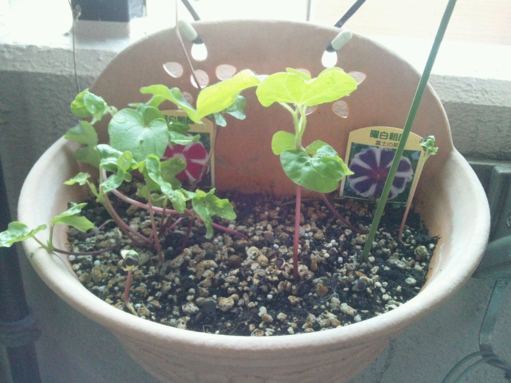 季節外れの朝顔 投稿日 2013年9月19日 著者 ningyocho-admin カテゴリー 店長ブログ こんにちは店長の岡田です(#^.^#) 台風も過ぎ去り、高い青空が秋 の訪れを告げていますが、 我が家では昨年植えていた朝顔の鉢から、 何故かこの次期に朝顔が発芽してました。 多分昨年咲いた朝顔の種が、 この夏のゲリラ豪雨と先日の台風の雨で、 鉢に水がかかり発芽したんだと思いますが、 果たして今から育って咲くのか見守って行きたいと思います。 この記事を書いた人 ningyocho-admin 記事一覧