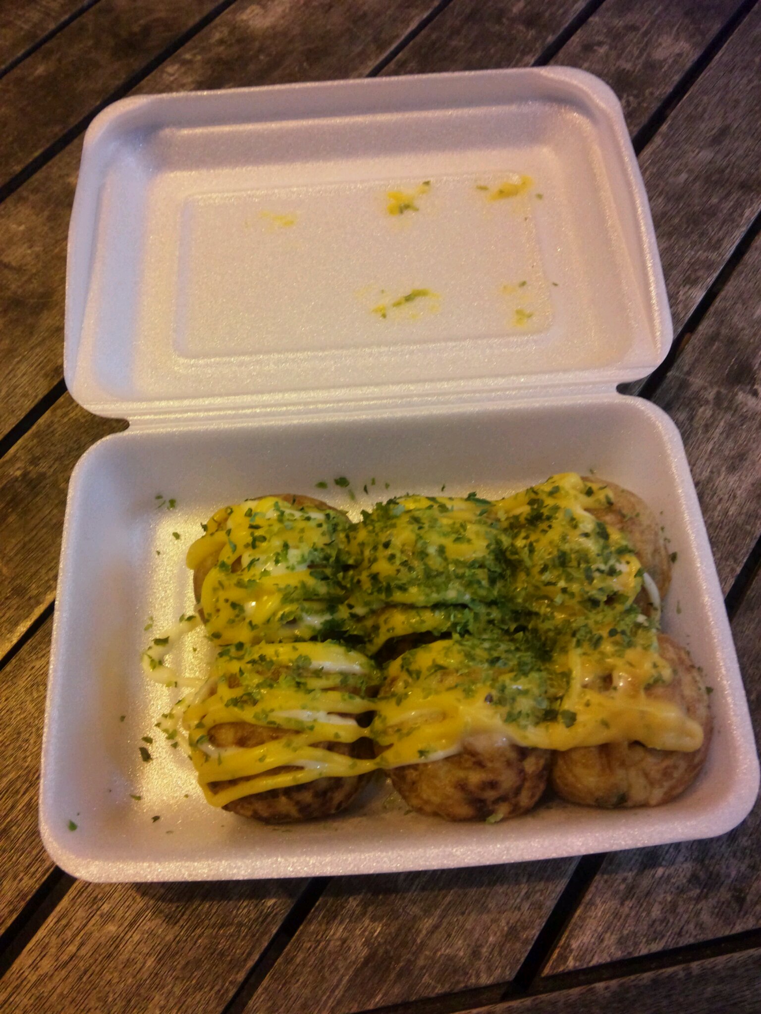 たこ焼き~♪ 投稿日 2013年12月23日 更新日 2013年12月21日 著者 ningyocho-admin カテゴリー スタッフブログ こんにちはスタッフの宮尾です(*^ー^)ノ♪ 先日、 先日ドンキホーテ・パウ北池袋店の前にあるドンキ屋台村でちょっと小腹がすいたので、 たこ丸でたこ焼きを買いました。 チーズマヨたこ焼きです(*^▽^*) ちょっとカロリーが高そうでしたが来ました中がトロッとしておいしかったですO(≧∇≦)O 6個入りで400円でした。 次に行ったら違うものを買おうかな…♪ この記事を書いた人 ningyocho-admin 記事一覧