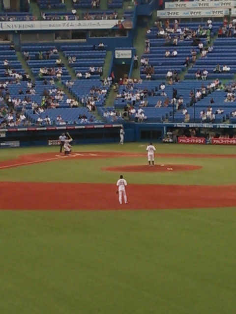 回が進むに連れて、まわりからビールの匂いがしてきて、さすが野球場という感じがしました。