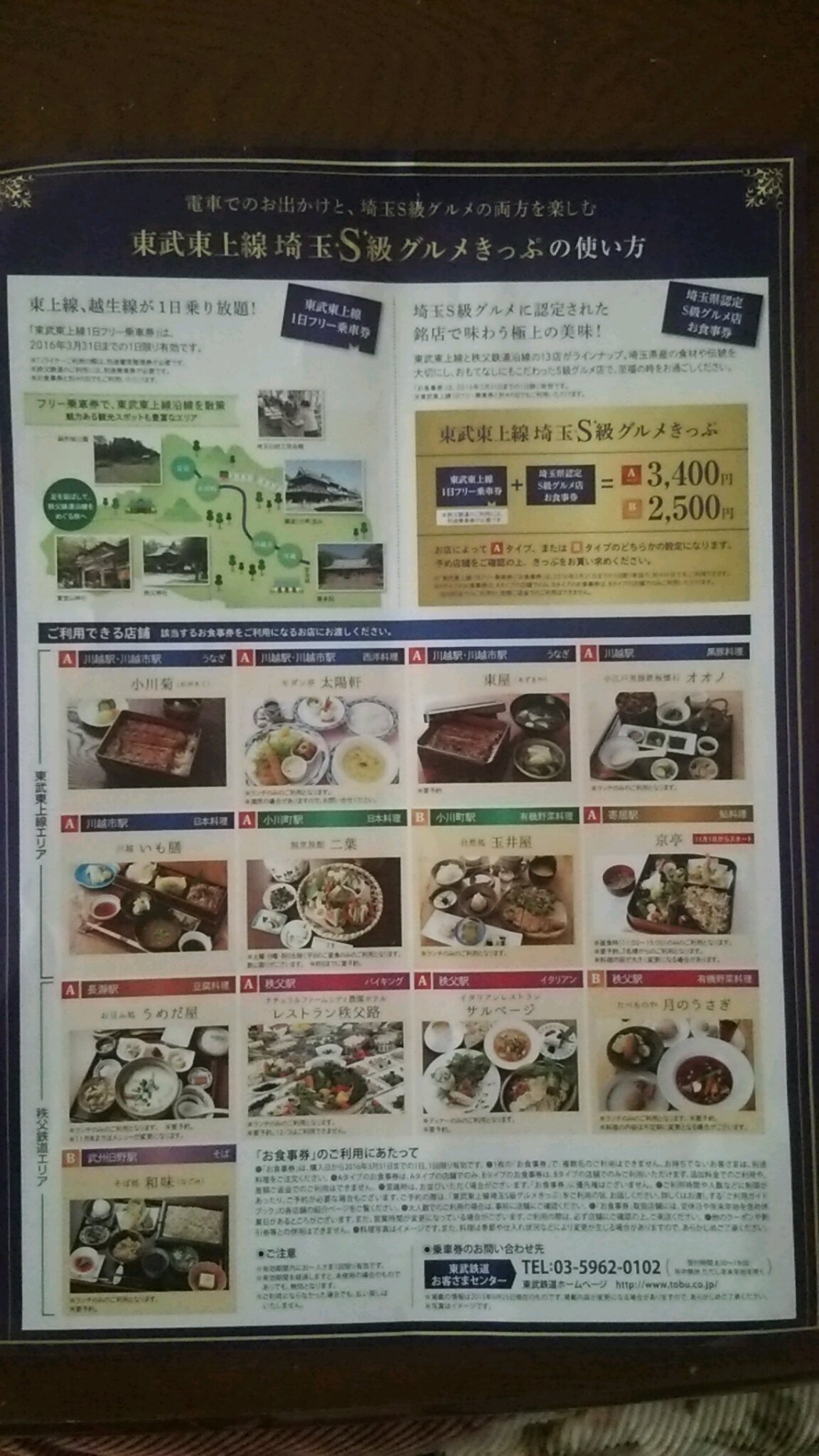 こんなのど~でしょう( ^)o(^ ) 投稿日 2016年1月11日 更新日 2016年1月8日 著者 ningyocho-admin カテゴリー スタッフブログ 明けましておめでとうございます\(^o^)/ こんにちはスタッフの宮尾です。 私は通勤で東武東上線を使うのですが、東上線でこんな企画がありました。 東上線の1日フリー切符と埼玉S級グルメお食事券がセットになったものです。 埼玉S級グルメとは、埼玉県でとれた食材を使った料理で、東上線沿線の、小江戸と呼ばれる川越から終点の寄居、それから、寄居から先の秩父鉄道沿線のお店で使えます。 機会があったら行ってみたいと思います(#^.^#) この記事を書いた人 ningyocho-admin 記事一覧