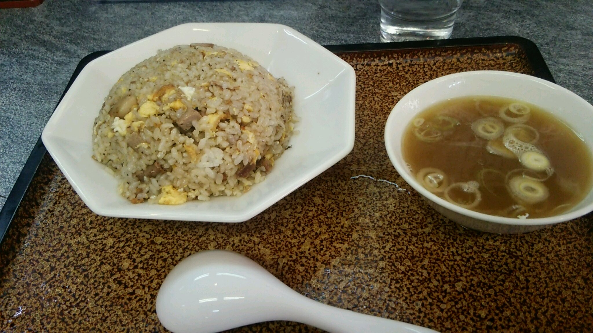 普通のチャーハンでもチャーシューがゴロゴロと入っていて胡椒が効いたしっとりチャーハンでした。